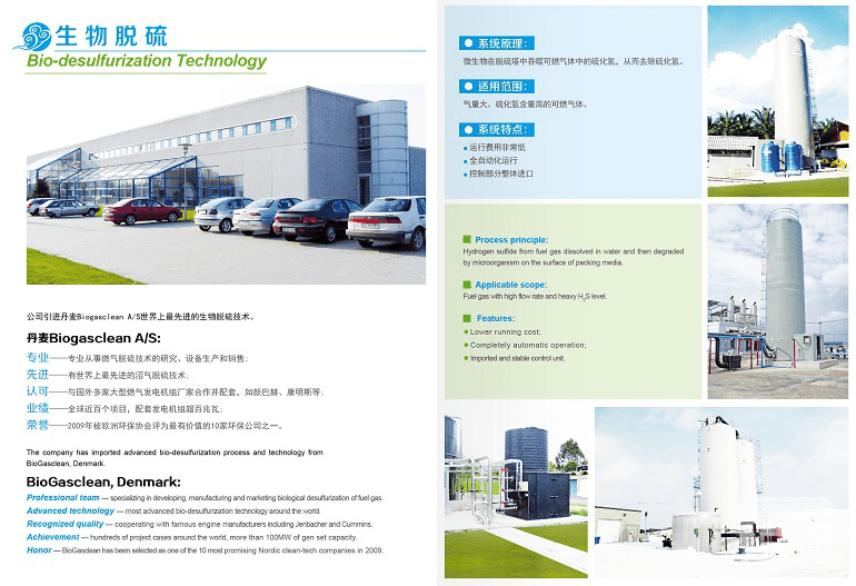 目前污水、垃圾處理過(guò)程中,越來(lái)越多的工程項(xiàng)目選用厭氧處理工藝,沼氣作為一種衍生產(chǎn)物,漸漸被我們所熟知并利用。但從厭氧罐中出來(lái)的沼氣含有較高濃度的H2S及其它一些雜質(zhì),如不對(duì)沼氣進(jìn)行脫硫、凈化處理,則會(huì)對(duì)沼氣運(yùn)送管道、存儲(chǔ)設(shè)備及后續(xù)運(yùn)用設(shè)備發(fā)生腐蝕,削減運(yùn)用年限并形成安全危險(xiǎn)。所以,通常是先通過(guò)脫硫凈化處理后再利用。